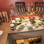 En gratis buffet serveres om morgenen på restauranten.